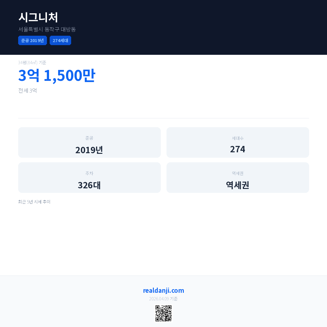 시그니처은(는) 2019년에 준공되었으며, 현재 7년차입니다. 총 274세대 규모입니다.