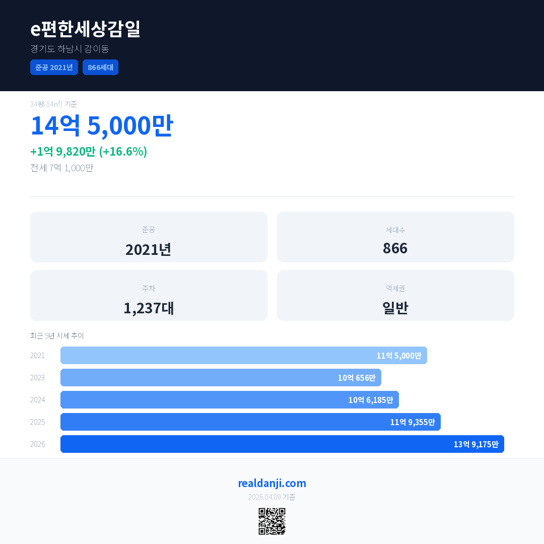 e편한세상감일 최근 거래가는 14억입니다. (2026-03)
