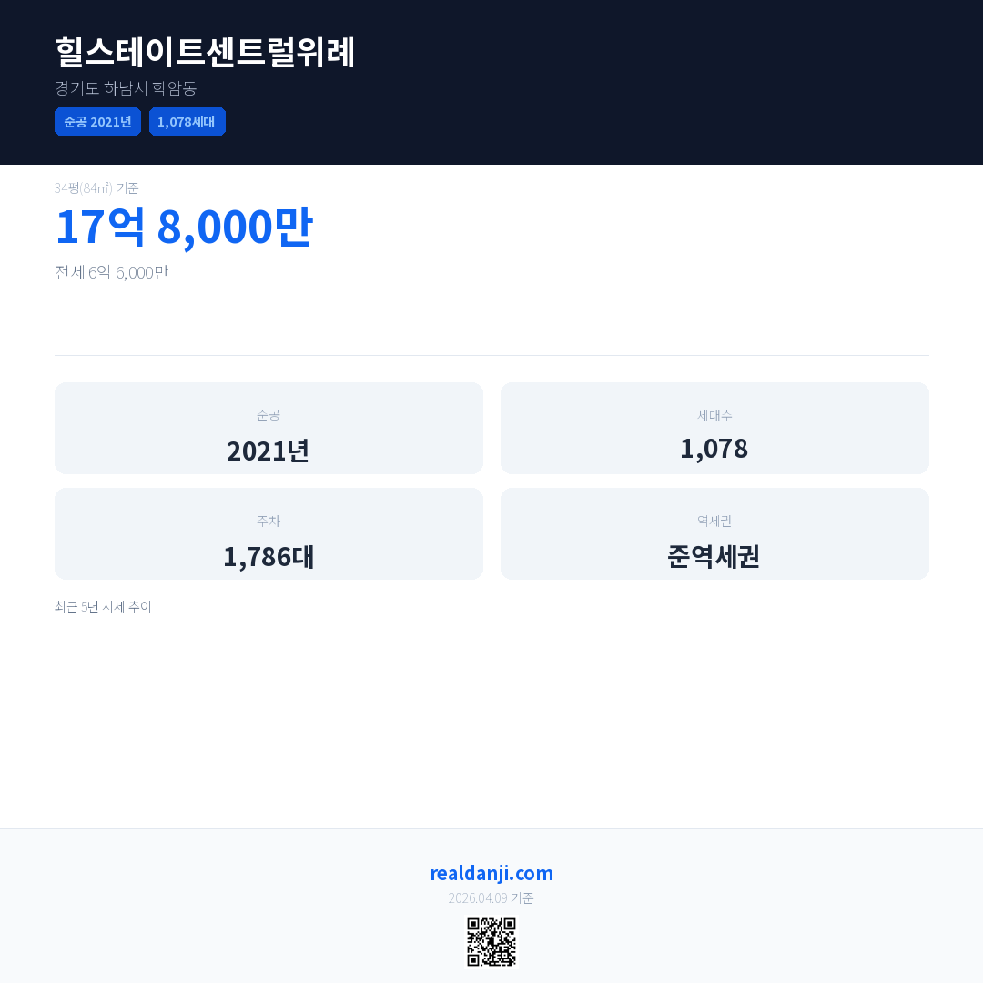 힐스테이트센트럴위례 최근 거래가는 17억 8,000만입니다. (2026-02)