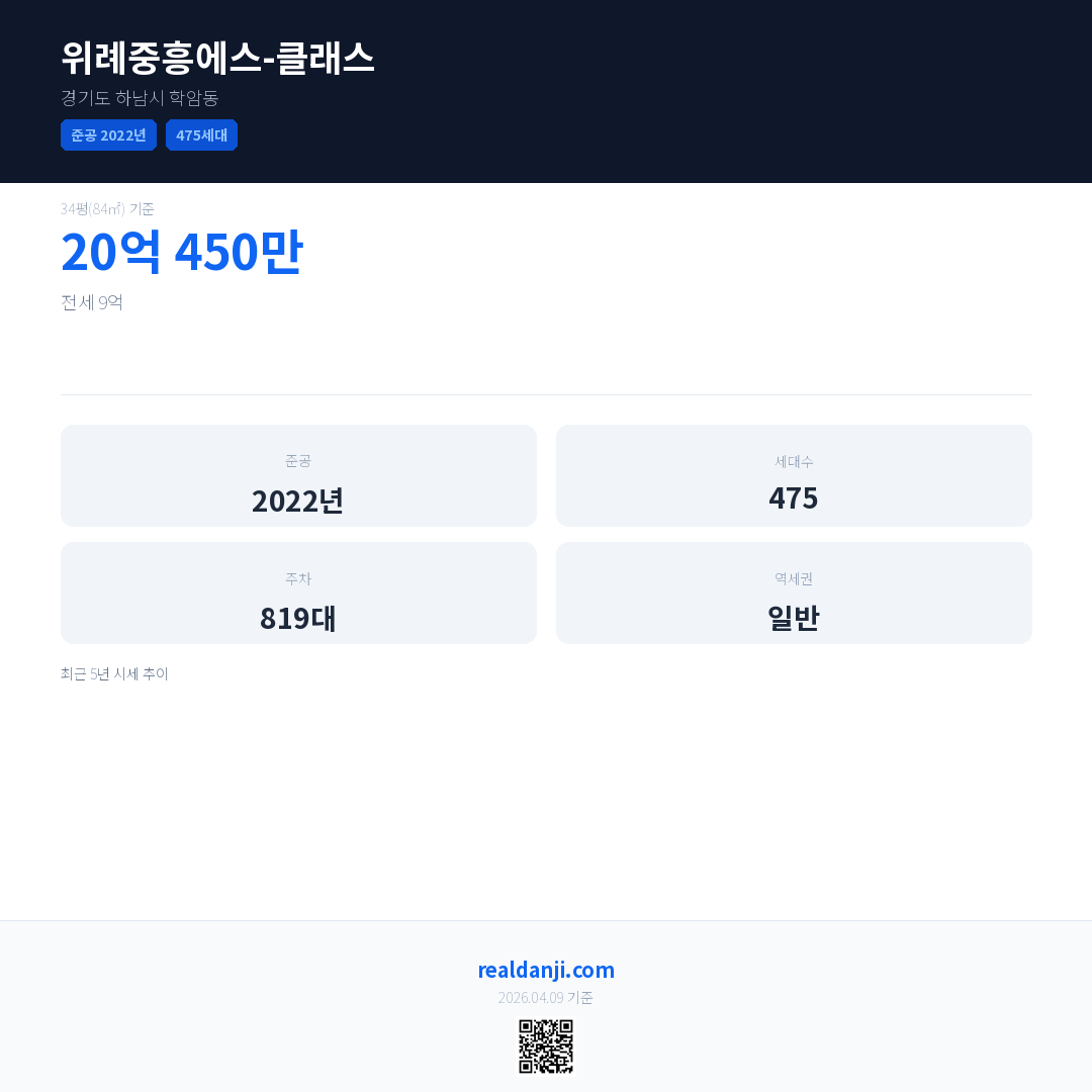 위례중흥에스-클래스 최근 거래가는 20억 450만입니다. (2026-02)