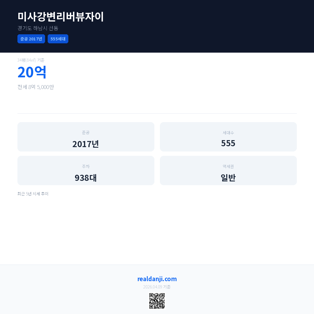 미사강변리버뷰자이 최근 거래가는 20억입니다. (2026-01)