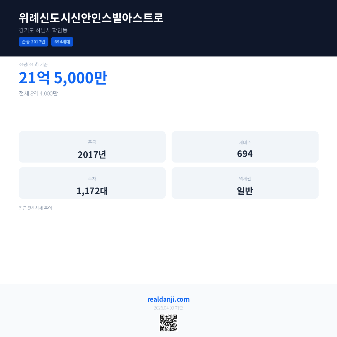 위례신도시신안인스빌아스트로 최근 거래가는 21억 5,000만입니다. (2026-02)