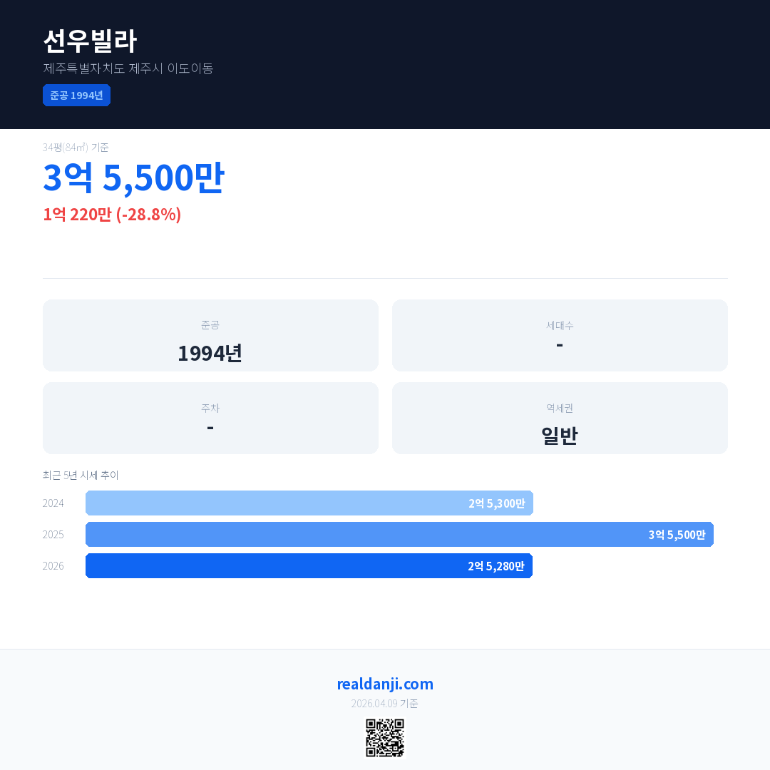 선우빌라 최근 거래가는 3억 5,500만입니다. (2026-04)