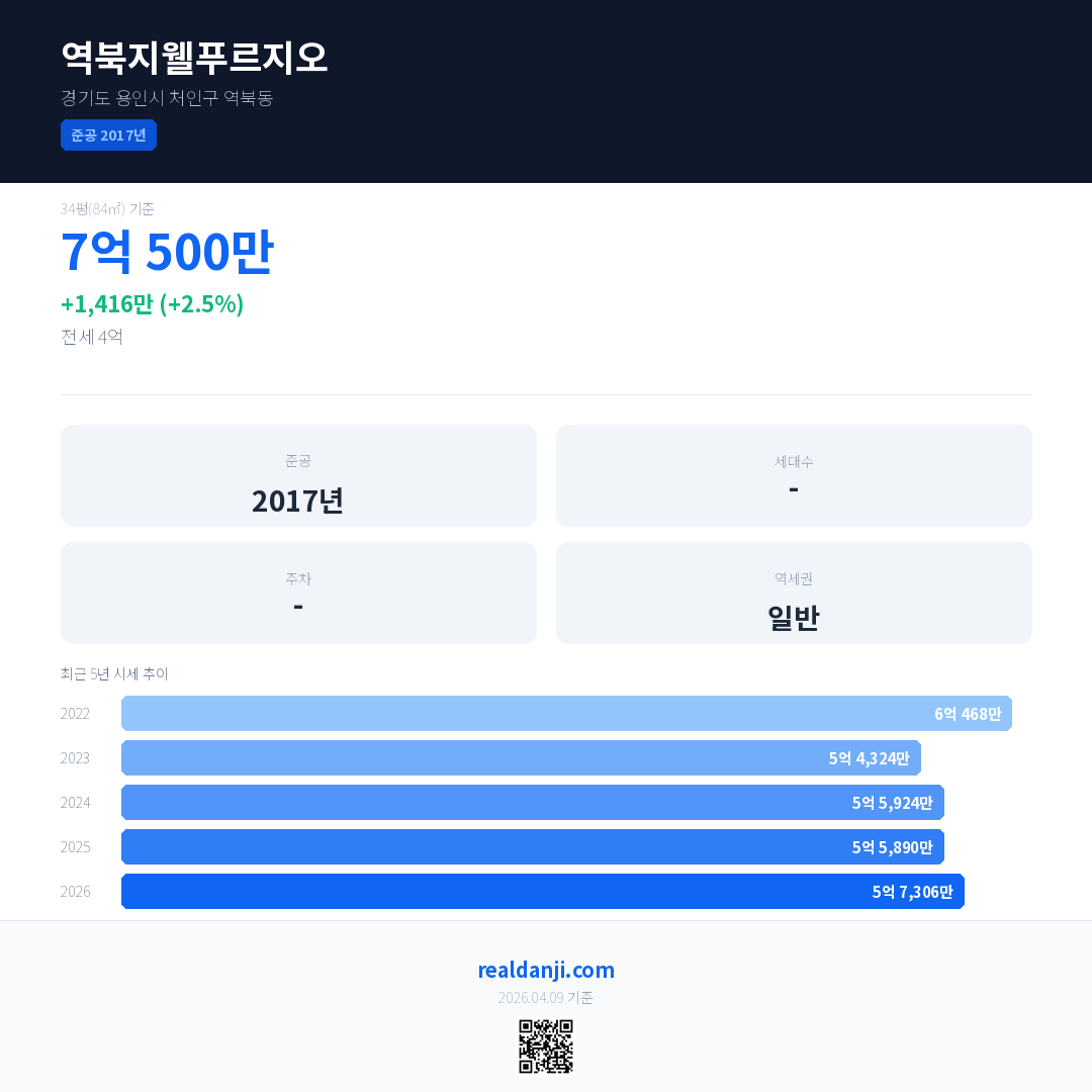 역북지웰푸르지오 최근 거래가는 4억 7,500만입니다. (2026-04)