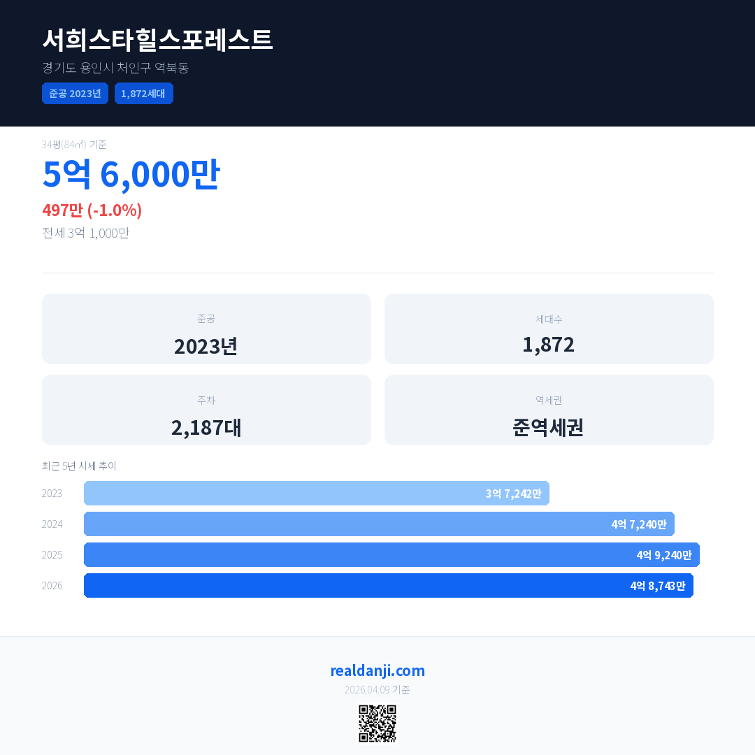 서희스타힐스포레스트 최근 거래가는 5억 6,000만입니다. (2026-03)
