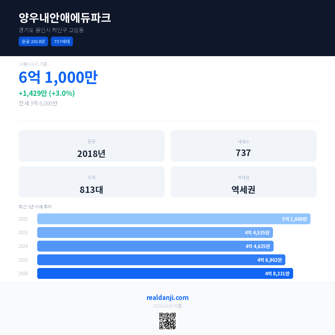 양우내안애에듀파크 최근 거래가는 6억 1,000만입니다. (2026-03)