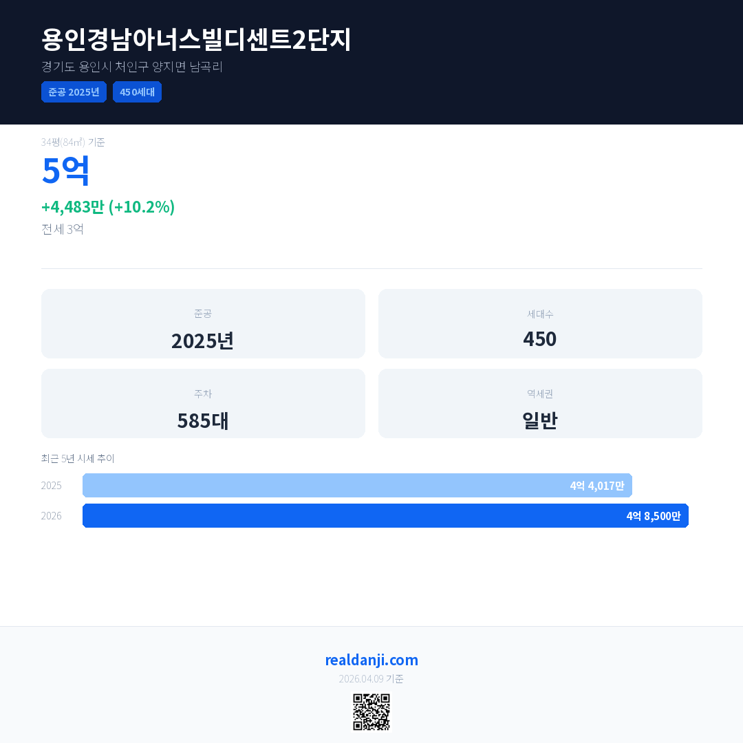 용인경남아너스빌디센트2단지 최근 거래가는 5억입니다. (2026-02)