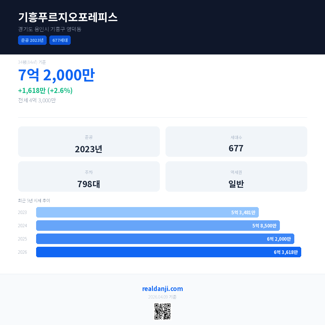 기흥푸르지오포레피스 최근 거래가는 7억 2,000만입니다. (2026-03)