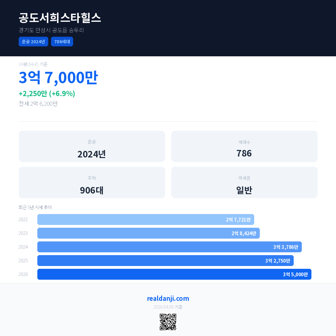 공도서희스타힐스 최근 거래가는 3억 7,000만입니다. (2026-03)