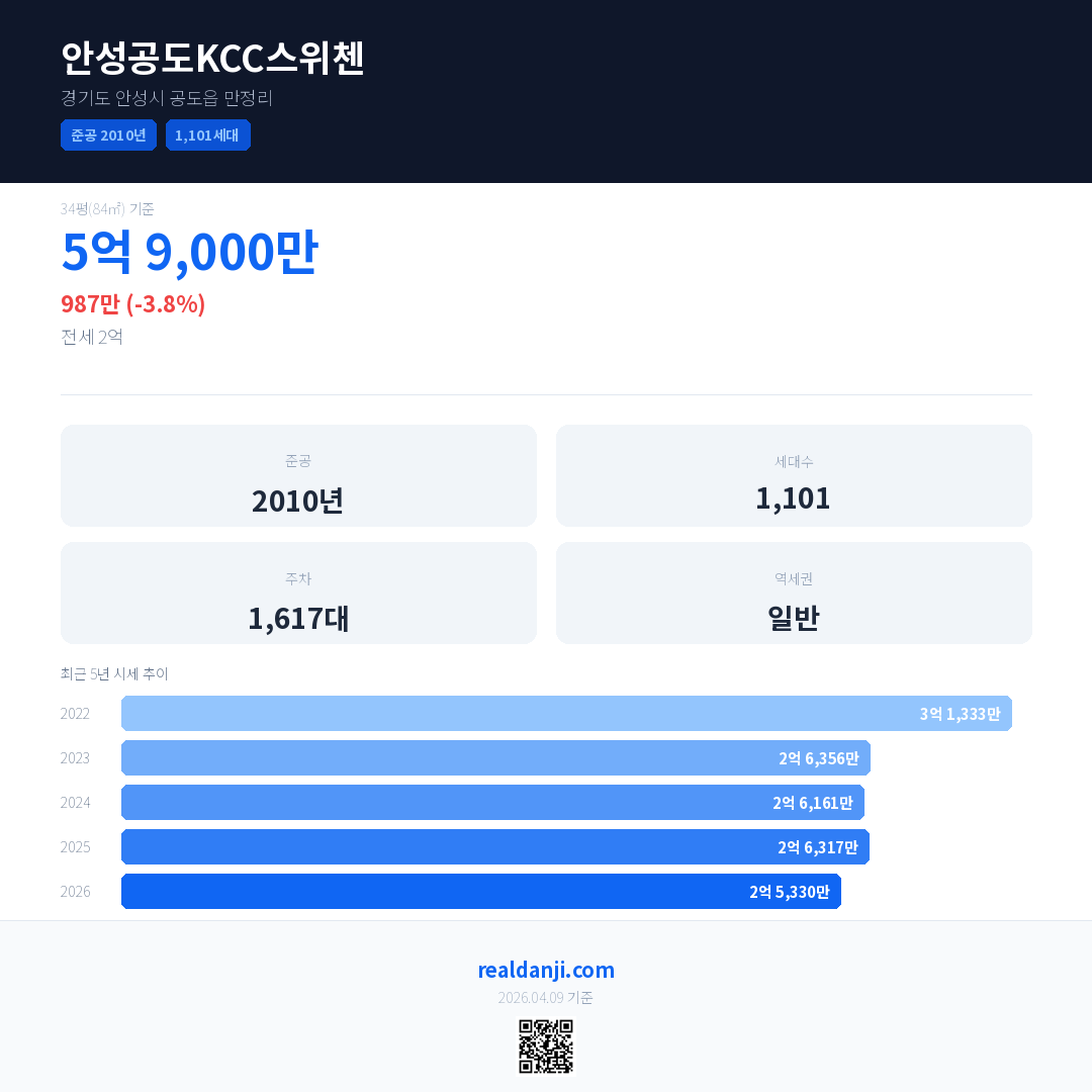 안성공도KCC스위첸 최근 거래가는 5억 9,000만입니다. (2026-03)