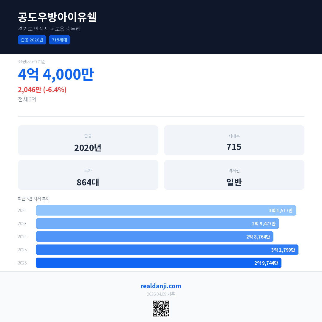 공도우방아이유쉘 최근 거래가는 4억 4,000만입니다. (2026-03)