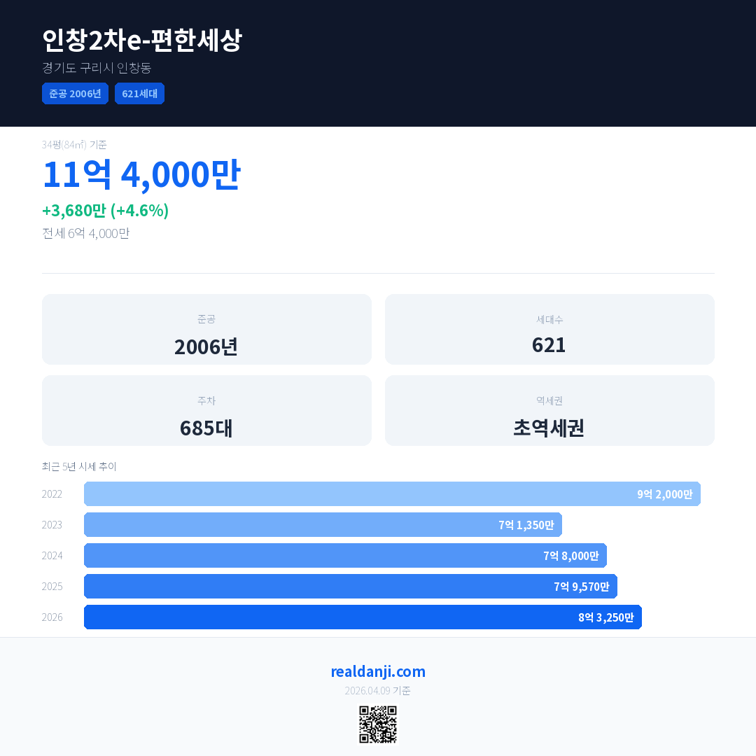인창2차e-편한세상 최근 거래가는 11억 4,000만입니다. (2026-03)