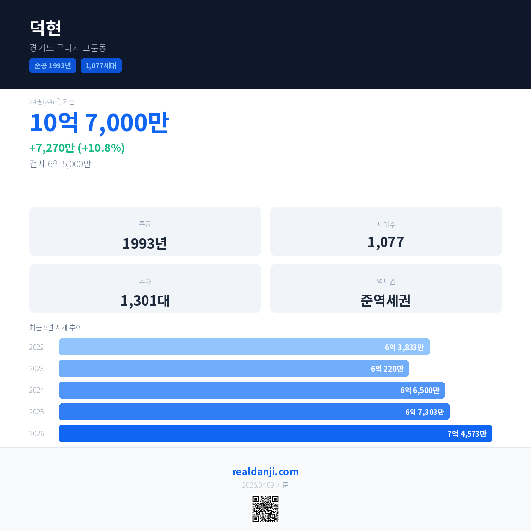 덕현 최근 거래가는 10억 7,000만입니다. (2026-03)