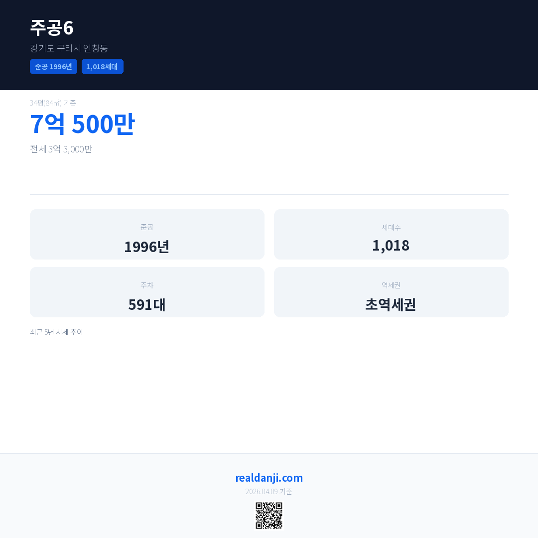 주공6 최근 거래가는 7억 500만입니다. (2026-04)