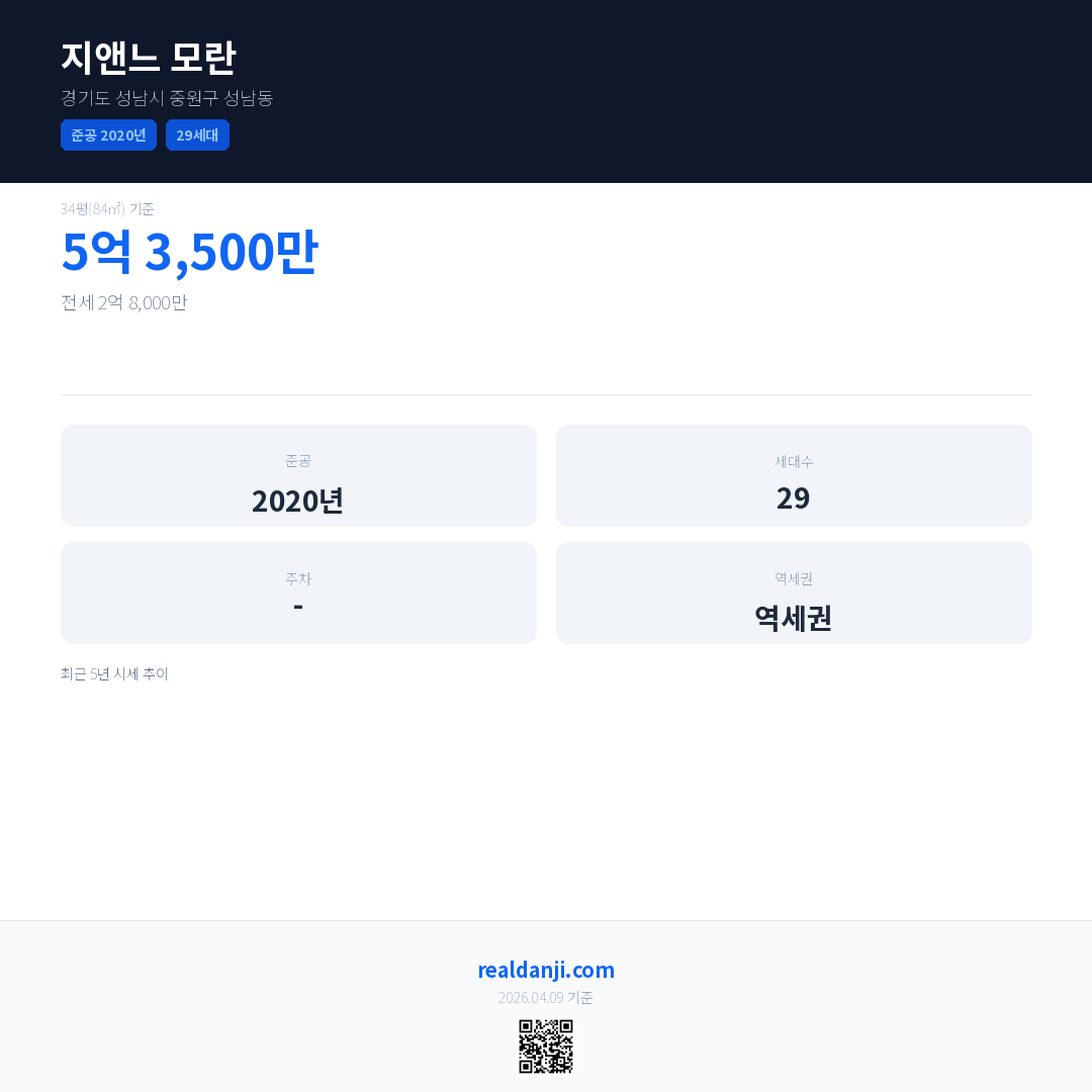 지앤느 모란 최근 거래가는 5억 3,500만입니다. (2026-03)