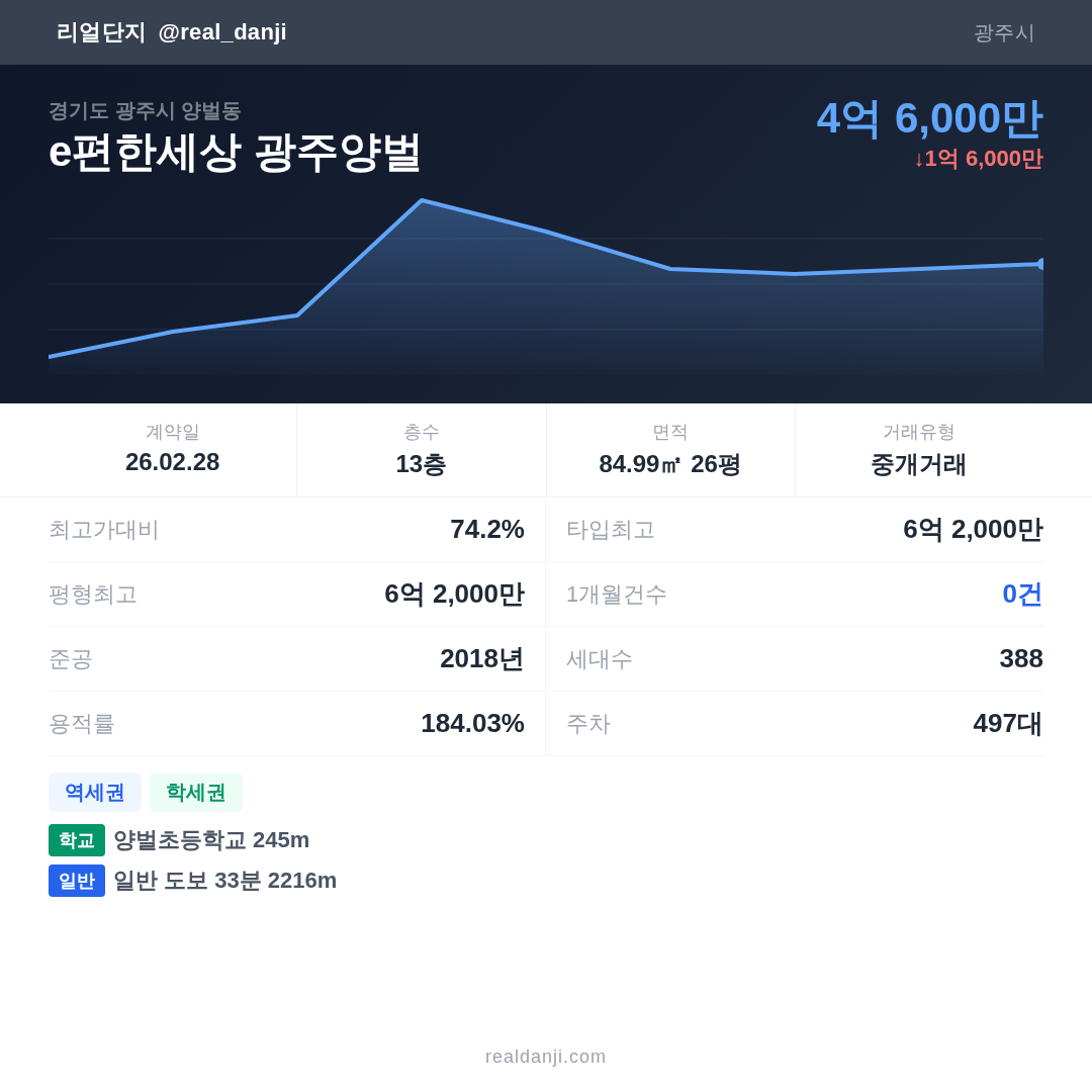 e편한세상 광주양벌 최근 거래가는 6억 2,000만입니다. (2026-02)