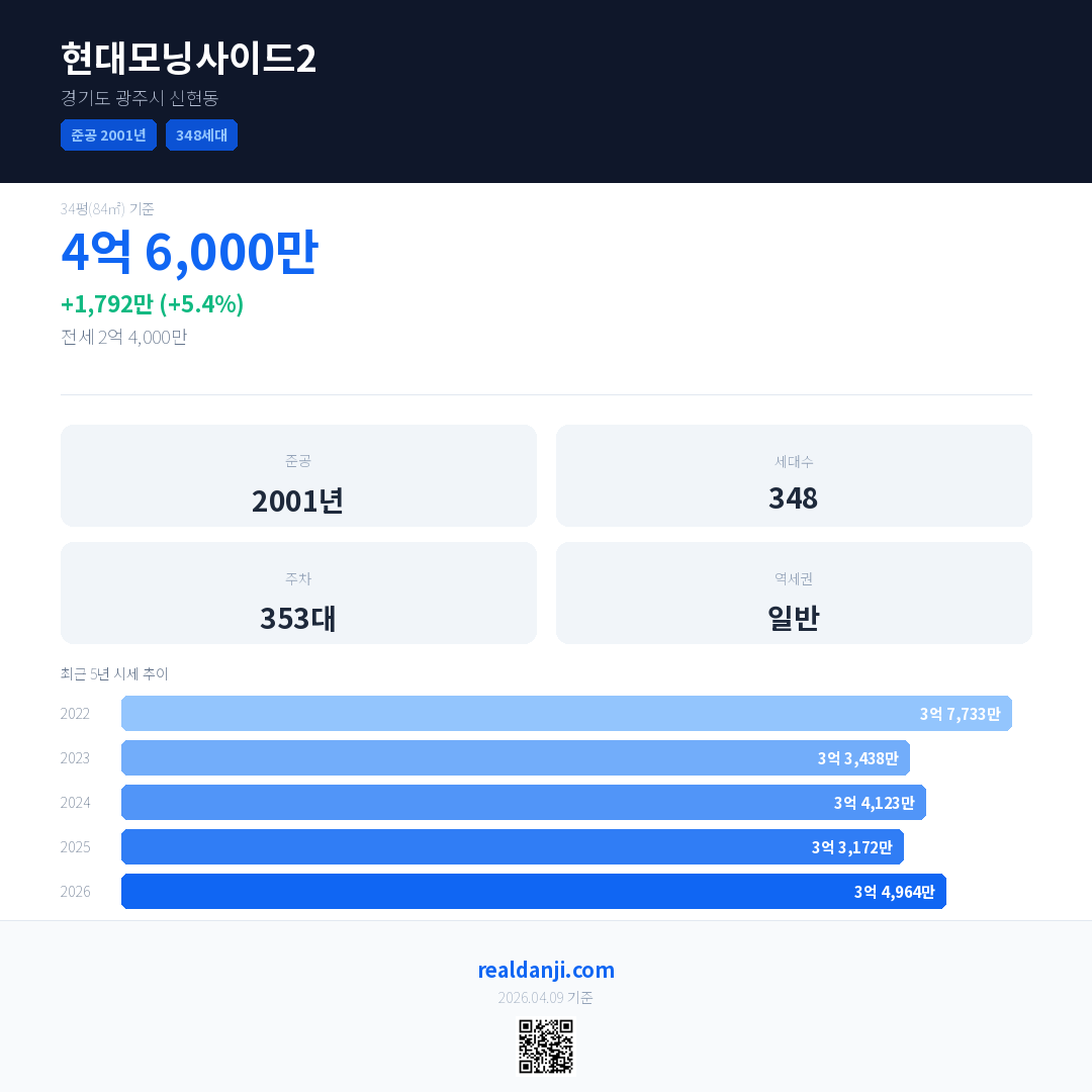 현대모닝사이드2 최근 거래가는 4억 6,000만입니다. (2026-04)