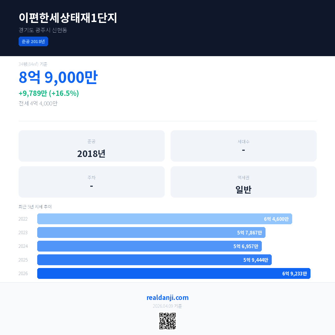 이편한세상태재1단지 최근 거래가는 8억 9,000만입니다. (2026-02)