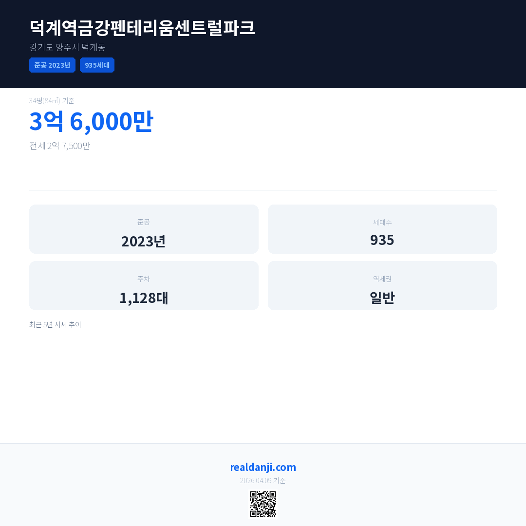 덕계역금강펜테리움센트럴파크 최근 거래가는 3억 6,000만입니다. (2026-04)