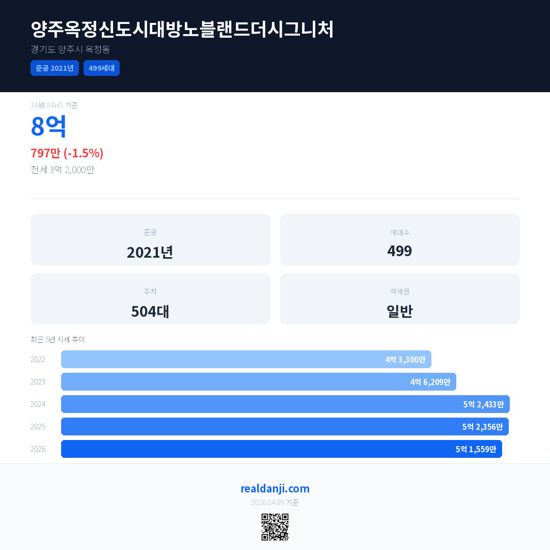 양주옥정신도시대방노블랜드더시그니처 최근 거래가는 8억입니다. (2026-04)