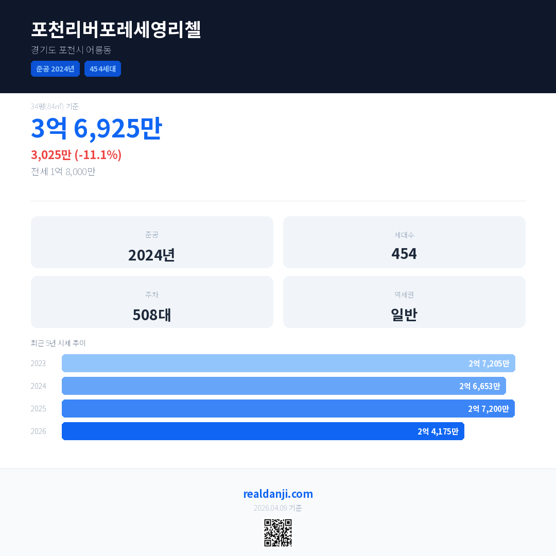 포천리버포레세영리첼 최근 거래가는 2억 4,700만입니다. (2026-03)