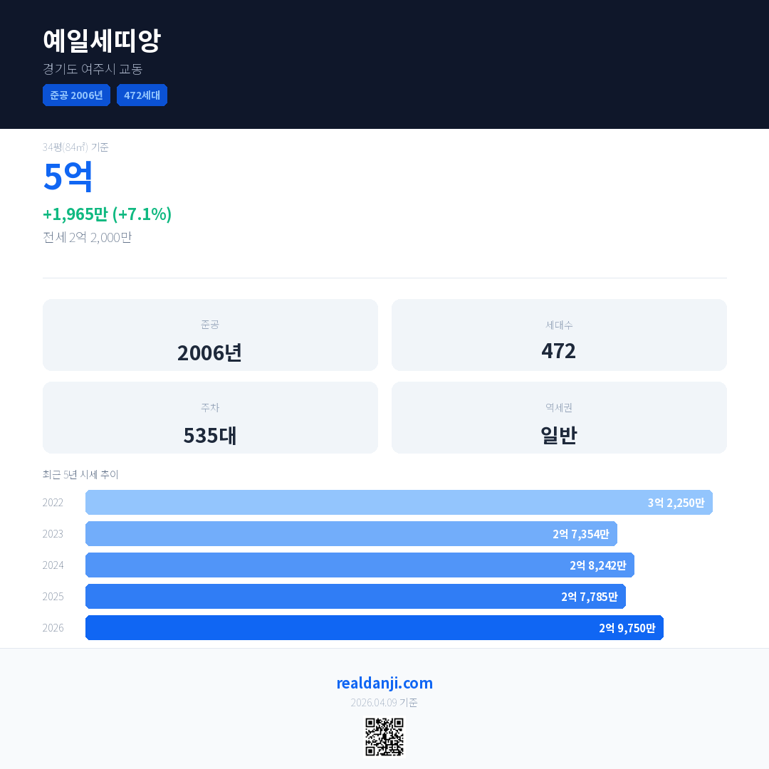 예일세띠앙 최근 거래가는 5억입니다. (2026-03)