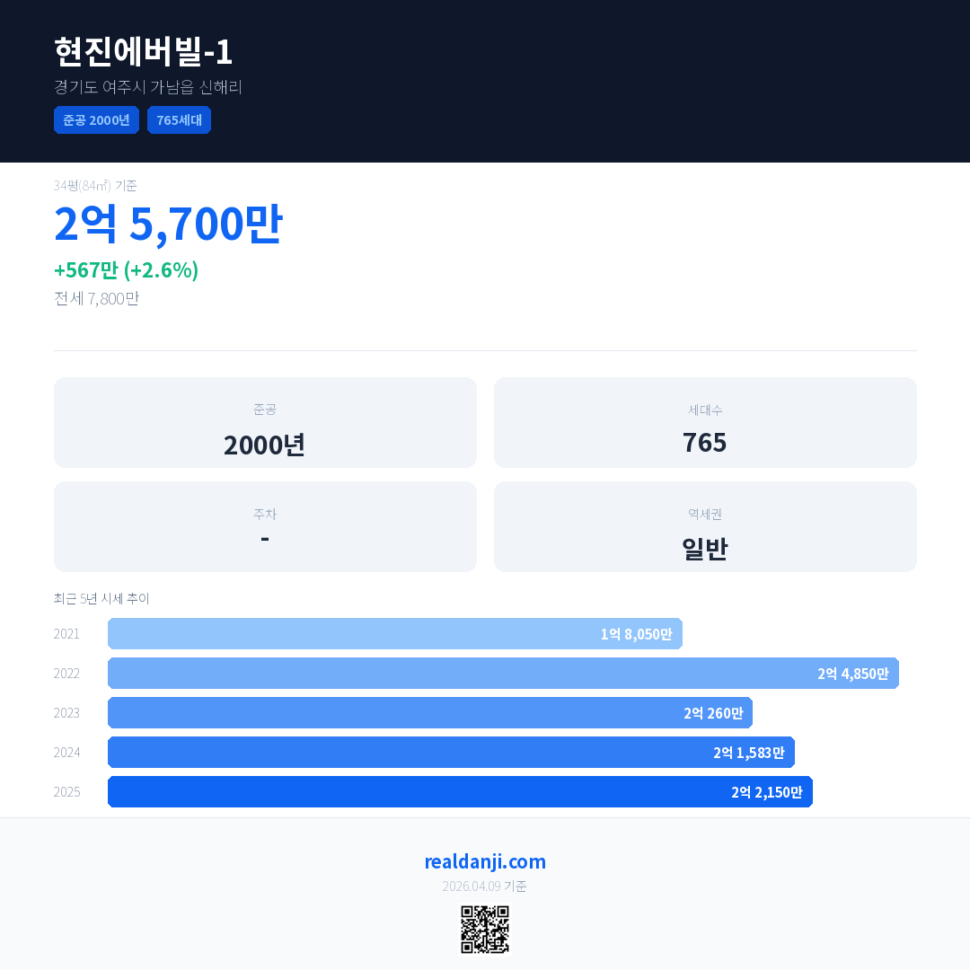 현진에버빌-1 최근 거래가는 2억 5,700만입니다. (2026-03)