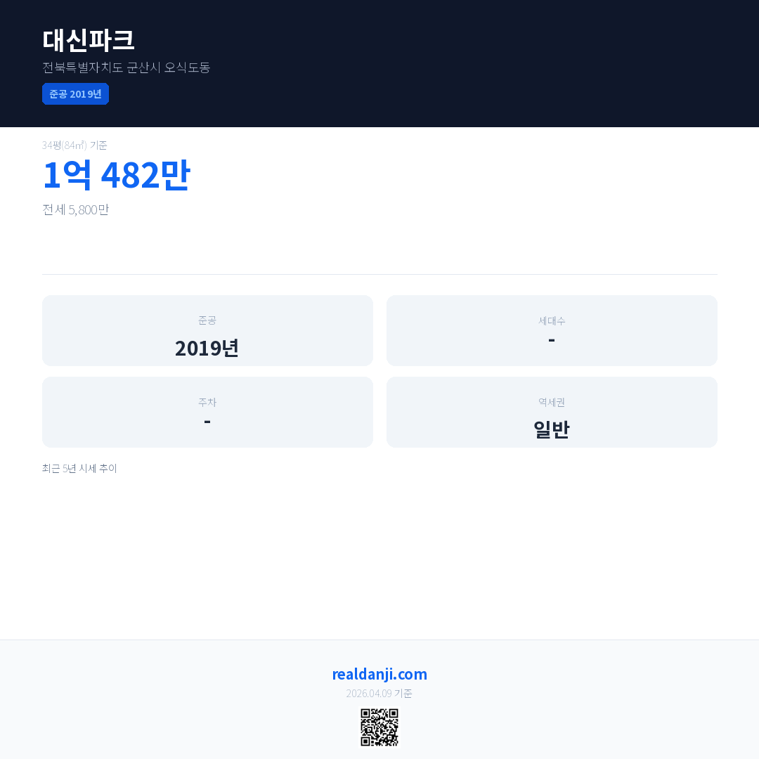 대신파크 최근 거래가는 1억 482만입니다. (2024-06)
