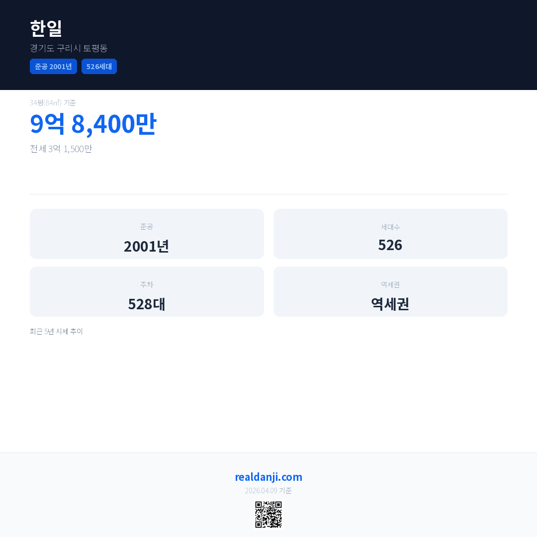 한일 최근 거래가는 9억 8,400만입니다. (2026-03)