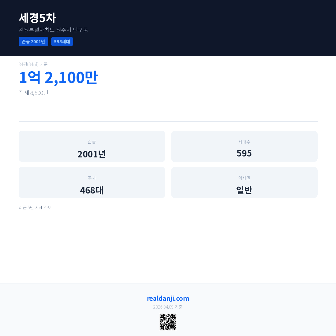 세경5차은(는) 2001년에 준공되었으며, 현재 25년차입니다. 총 595세대 규모입니다.