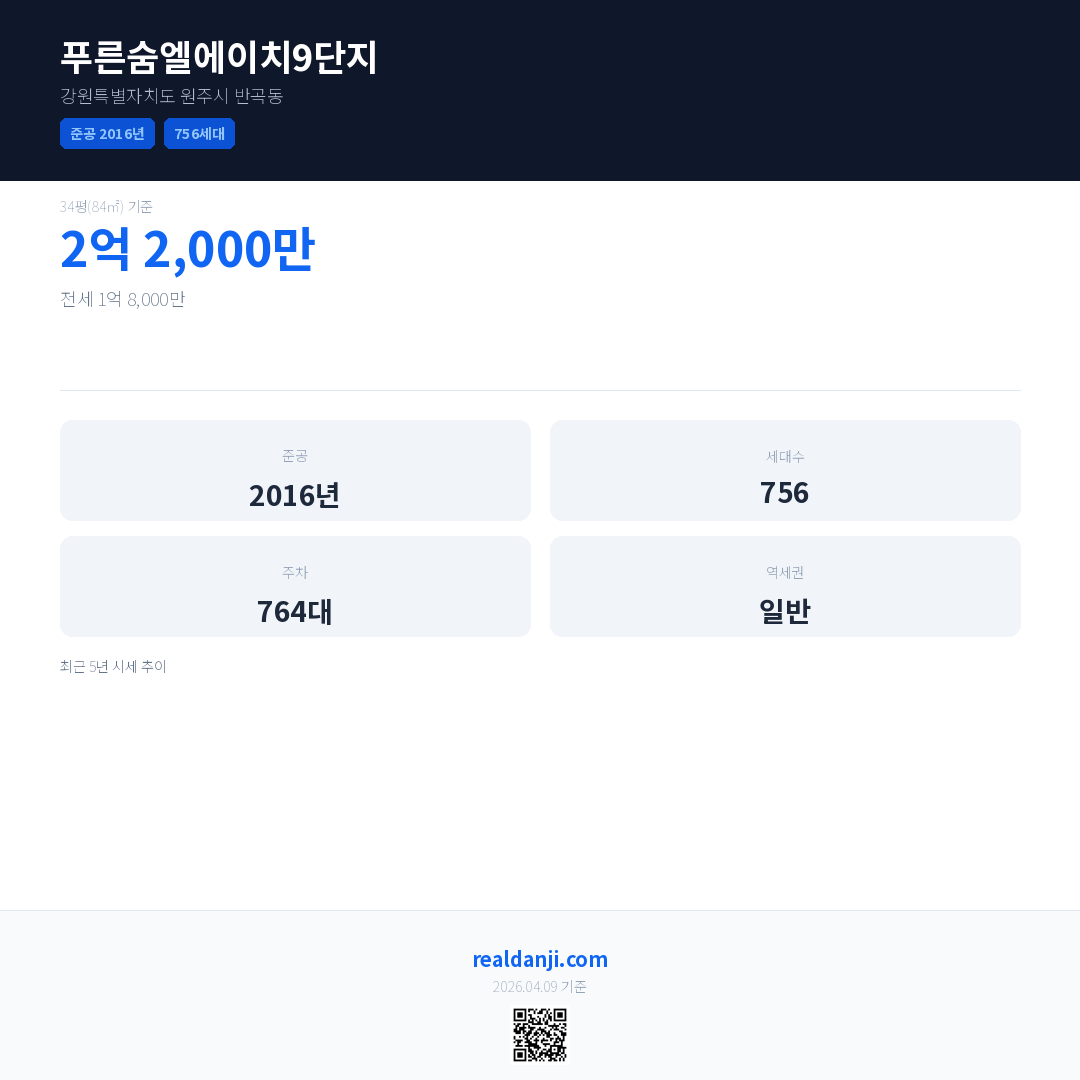 푸른숨엘에이치9단지 최근 거래가는 2억 2,000만입니다. (2026-03)