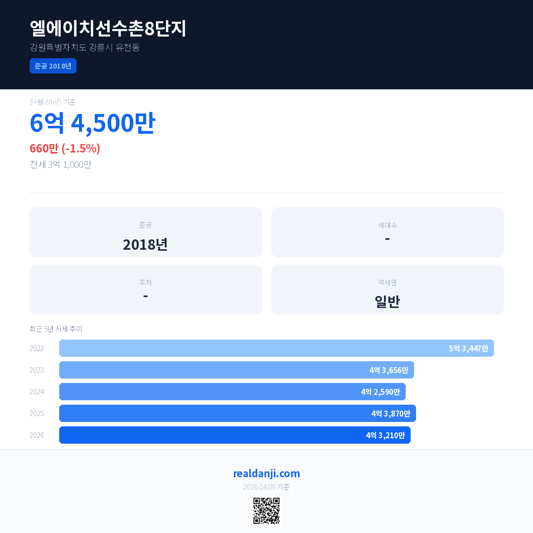 엘에이치선수촌8단지 최근 거래가는 6억 4,500만입니다. (2026-03)