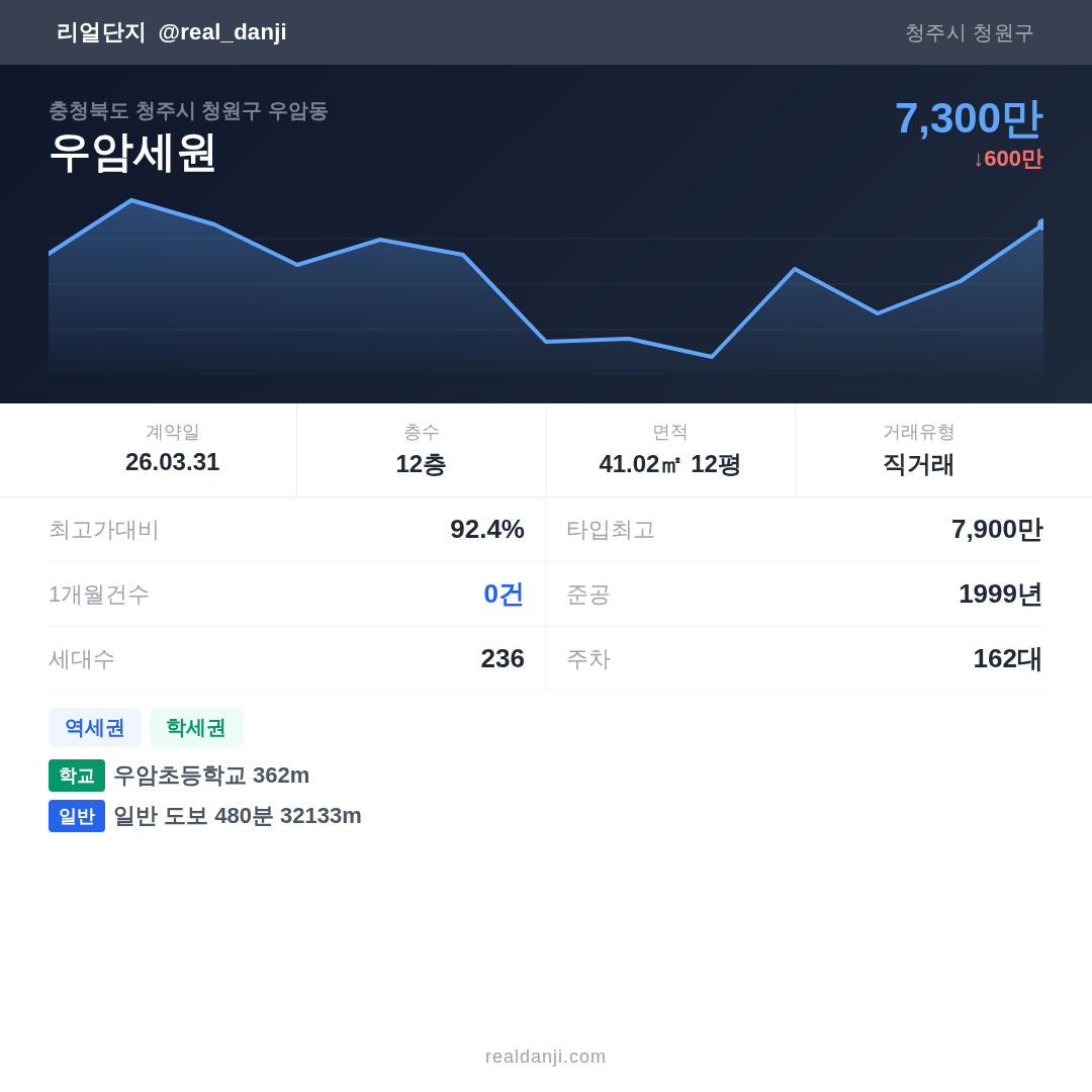 | 2026.03.31 | 41㎡ | 12층 | 7,300만 |
