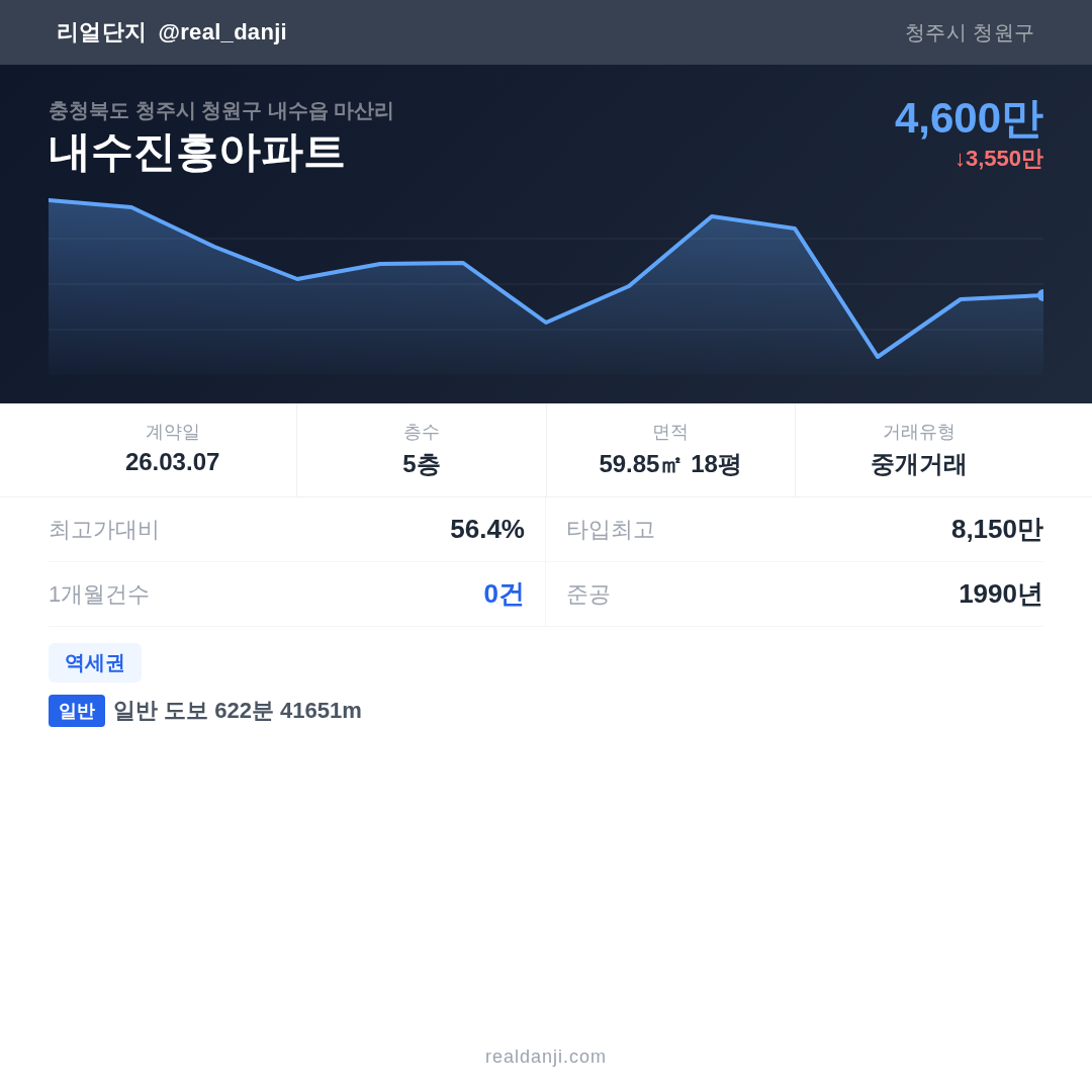 | 2026.03.07 | 60㎡ | 5층 | 4,600만 |