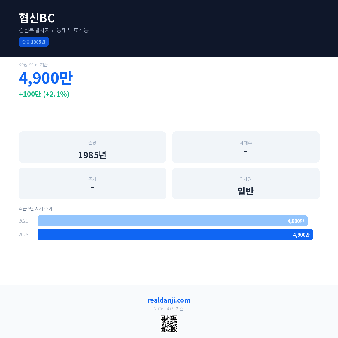 협신BC 국민평형 기준 2025년 평균 거래가는 4,900만으로, 전년 대비 2.1% 상승 했습니다.