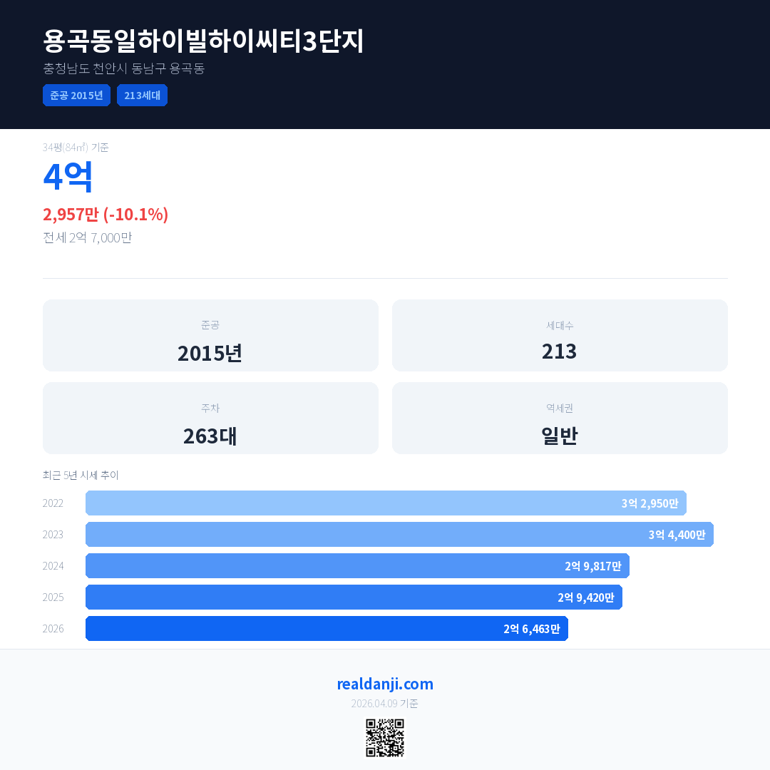 용곡동일하이빌하이씨티3단지 최근 거래가는 4억입니다. (2026-01)