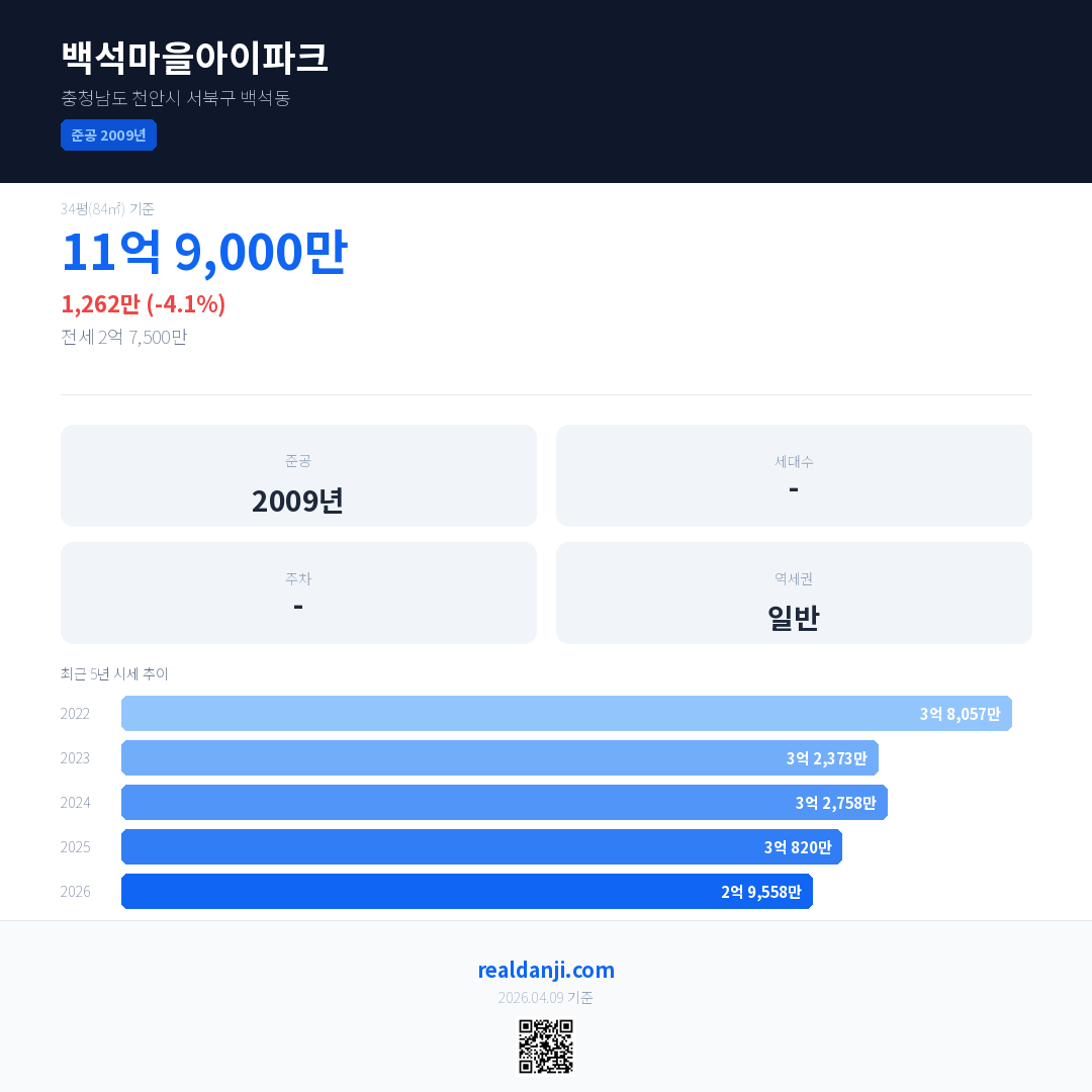 백석마을아이파크은(는) 2009년에 준공되었으며, 현재 17년차입니다.