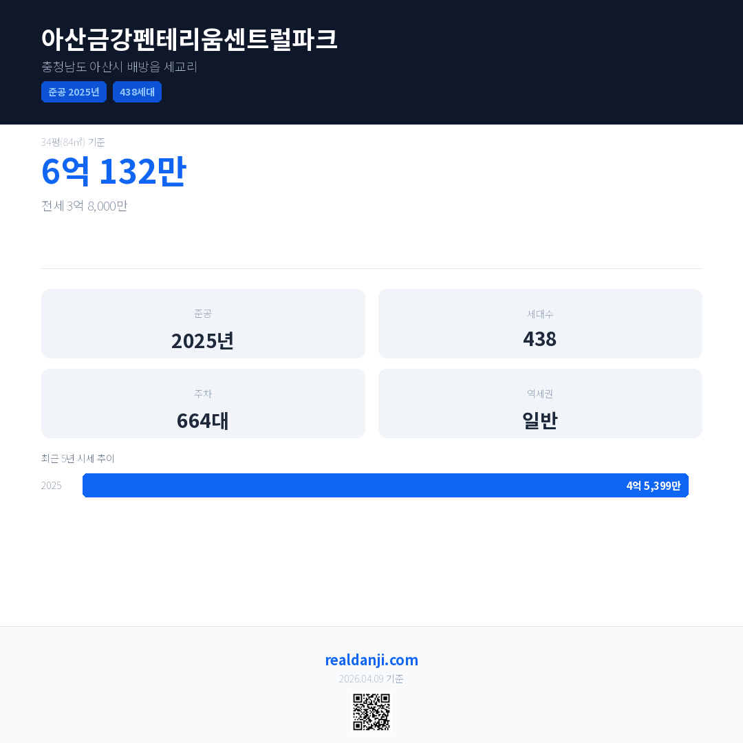 아산금강펜테리움센트럴파크 최근 거래가는 6억 132만입니다. (2026-02)