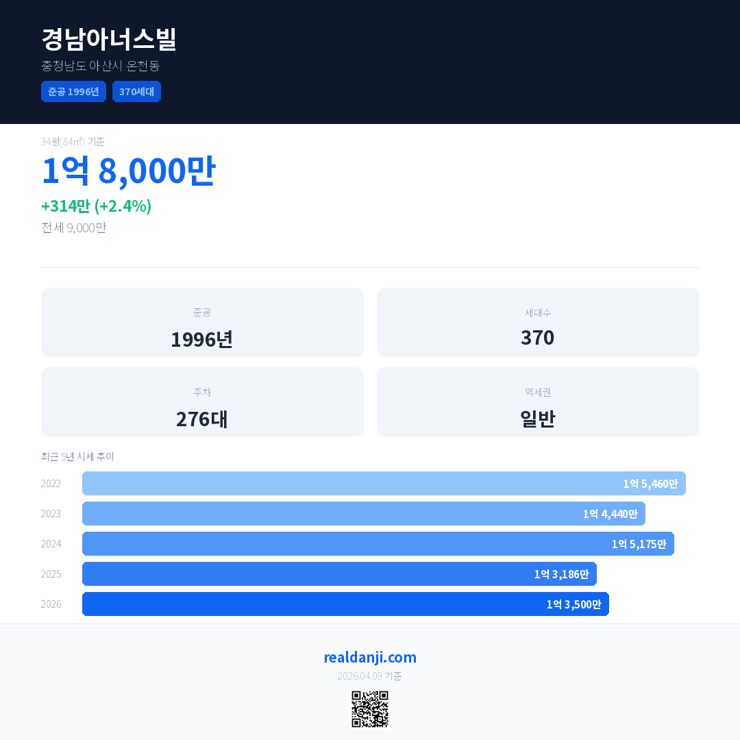 경남아너스빌 최근 거래가는 1억 8,000만입니다. (2026-03)
