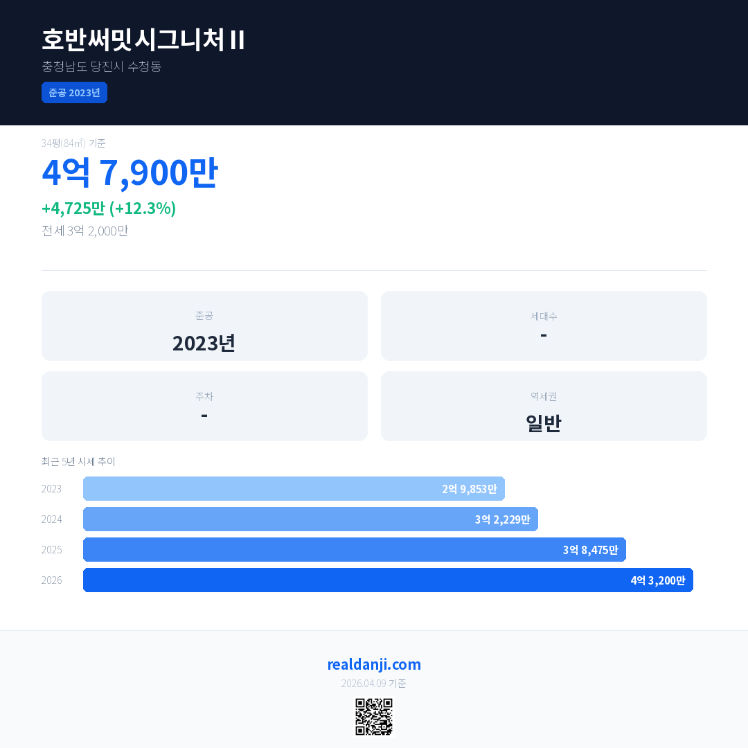 호반써밋시그니처Ⅱ 최근 거래가는 4억 1,500만입니다. (2026-04)