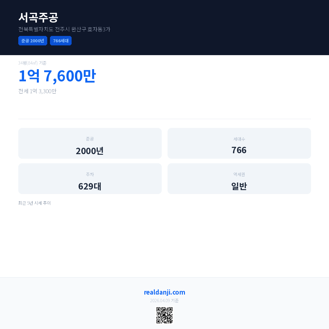 서곡주공 최근 거래가는 1억 7,000만입니다. (2026-04)