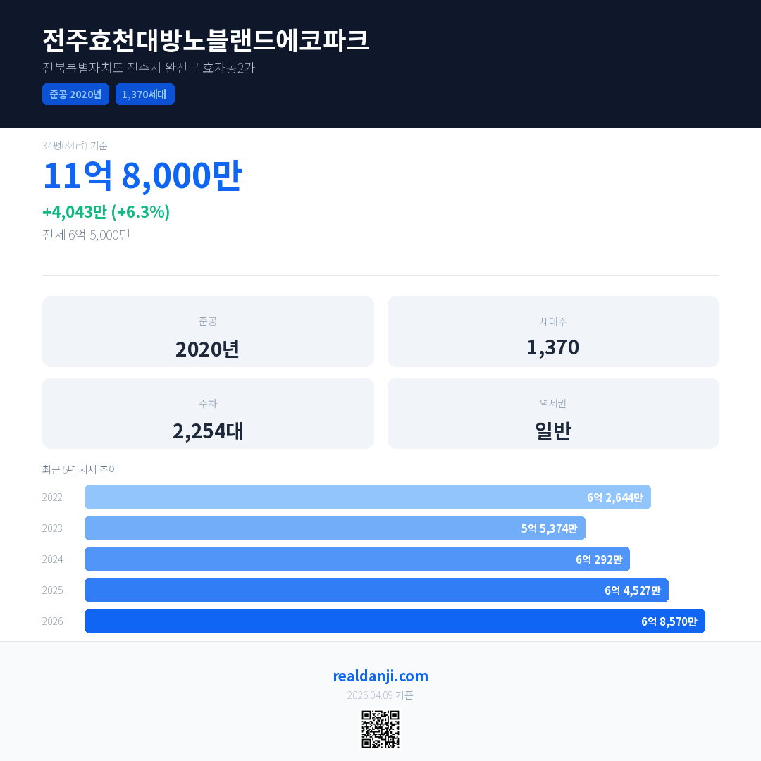 전주효천대방노블랜드에코파크 최근 거래가는 6억 5,900만입니다. (2026-03)
