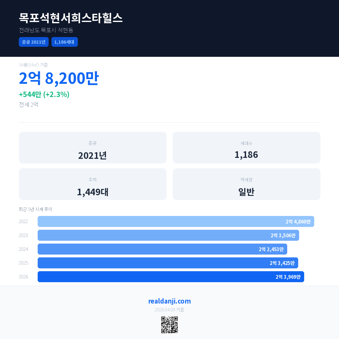 목포석현서희스타힐스 최근 거래가는 2억 4,000만입니다. (2026-04)