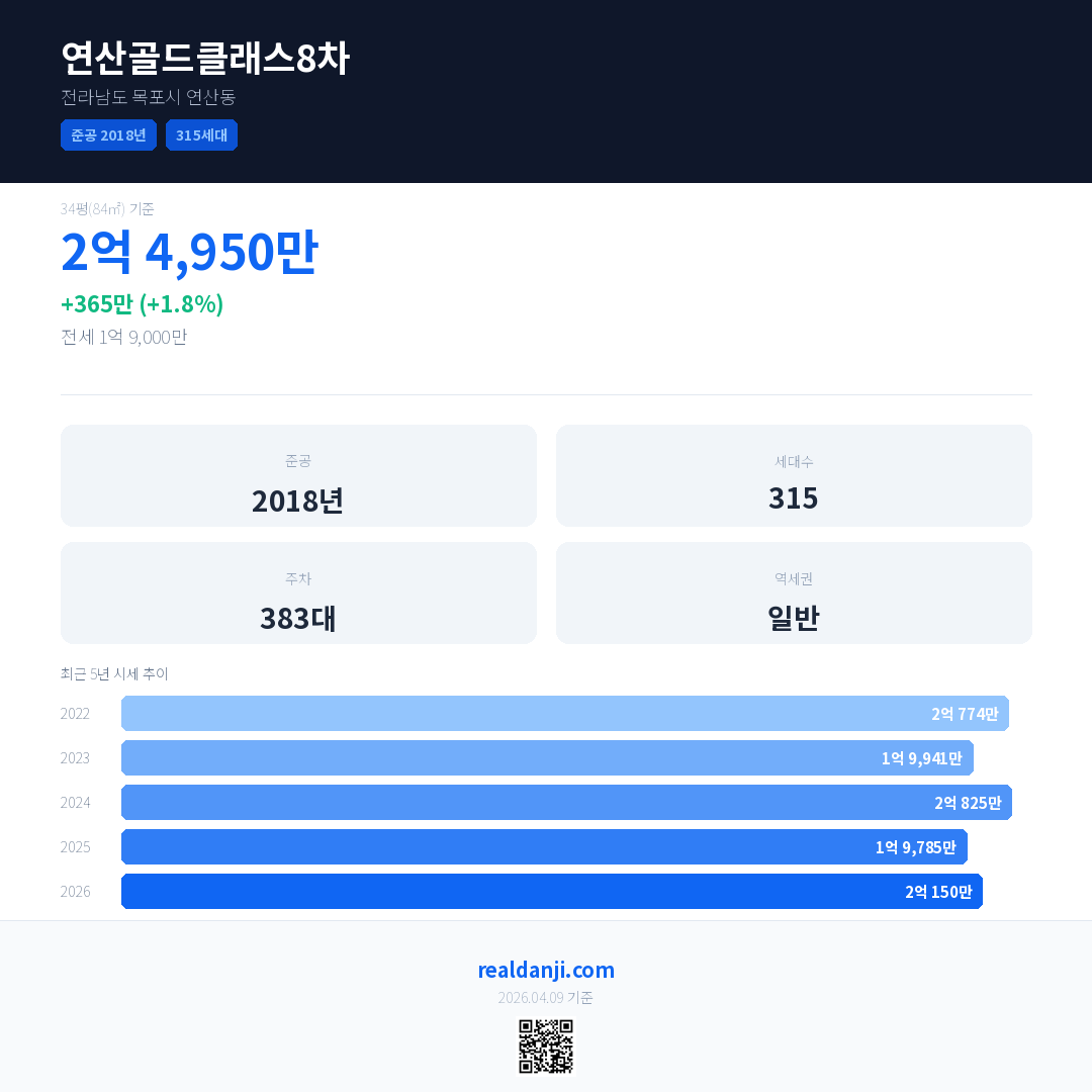 연산골드클래스8차 최근 거래가는 2억 4,950만입니다. (2026-03)