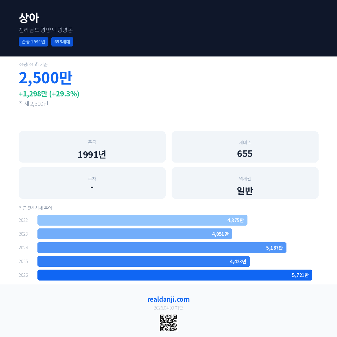 상아 국민평형 기준 2026년 평균 거래가는 5,721만으로, 전년 대비 29.3% 상승 했습니다.