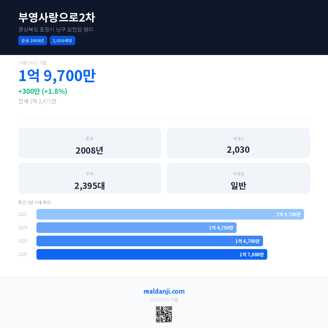 부영사랑으로2차 최근 거래가는 1억 9,700만입니다. (2026-02)