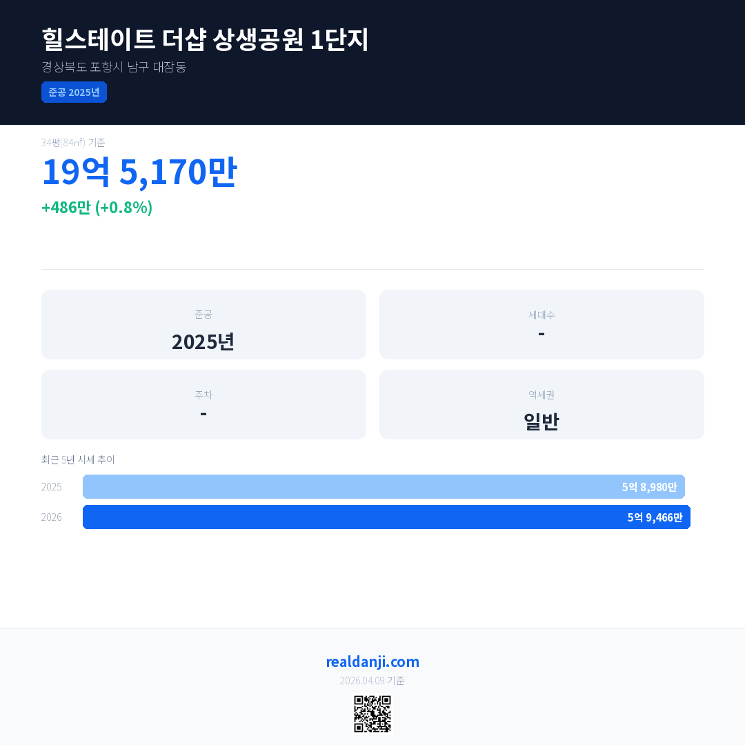 힐스테이트 더샵 상생공원 1단지은(는) 2025년에 준공되었으며, 현재 1년차입니다.