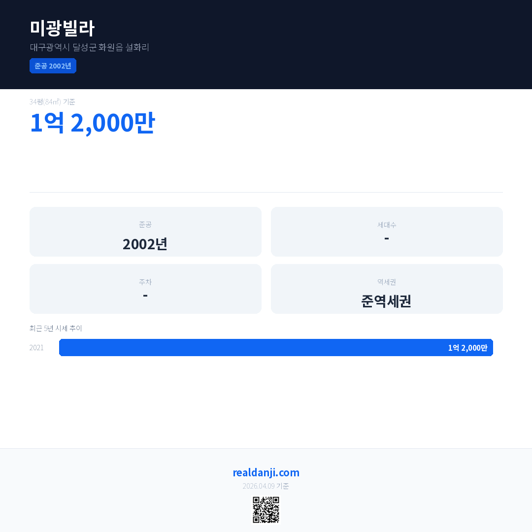 미광빌라 최근 거래가는 1억 2,000만입니다. (2021-05)