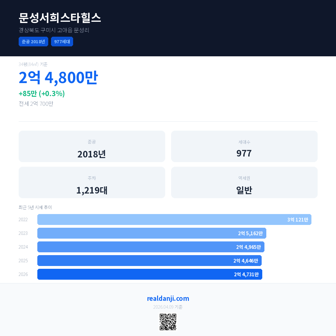 문성서희스타힐스 최근 거래가는 4억 9,000만입니다. (2026-03)