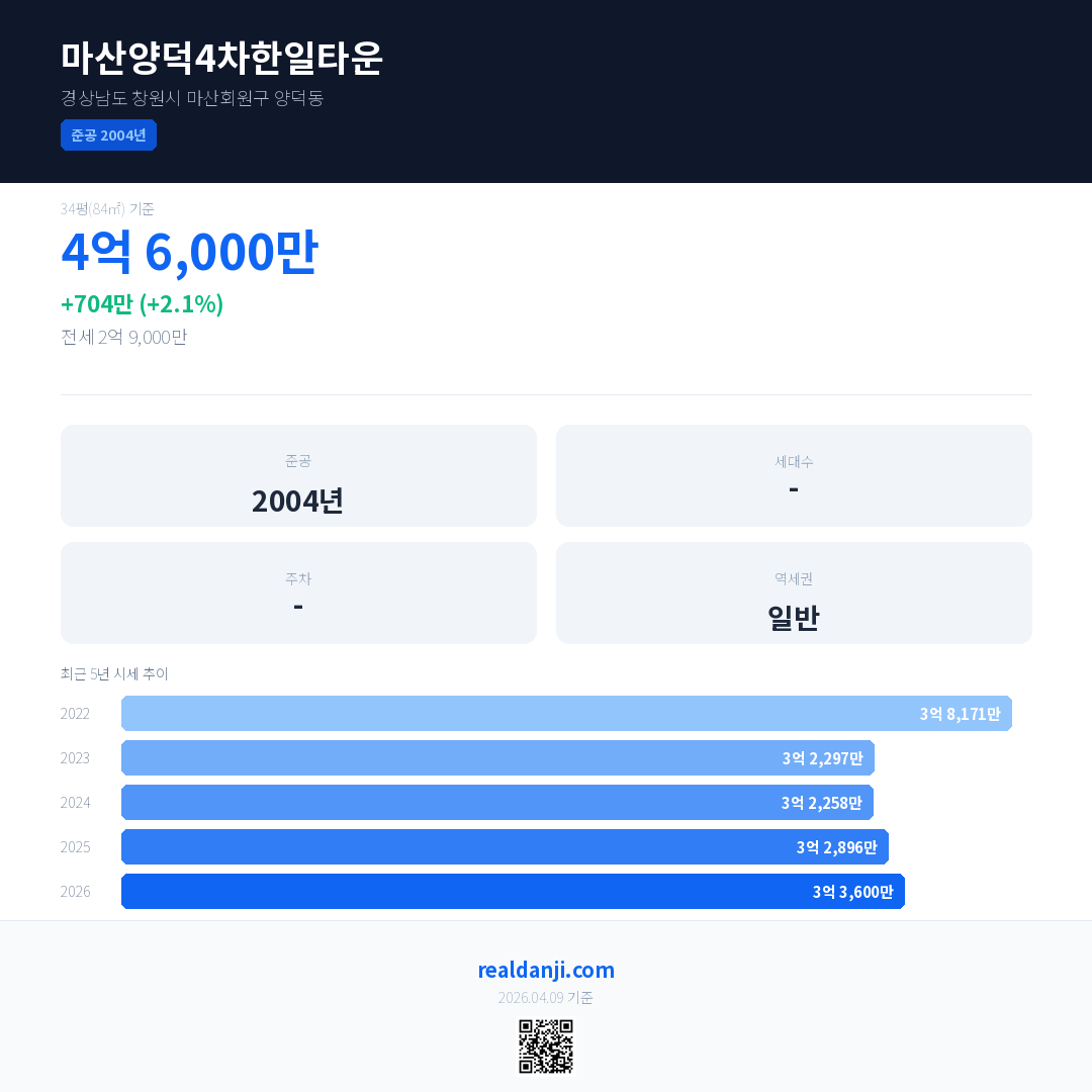 마산양덕4차한일타운 최근 거래가는 3억 4,250만입니다. (2026-03)